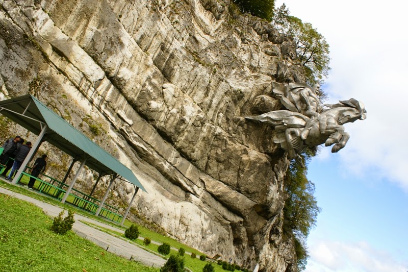 Nieopodal pomnika zbudowano „biesiedkę” czyli wielki stół dla wędrowców – kierowców. Bo do pomnika raczej nikt na piechotę nie chodzi. Za daleko od wszystkiego. Zatem wędrowcy, kiedy już tu dojadą, na stół stawiają wódkę z kukurydzy i pierogi, a sami stają za stołem. Osetyjczycy modlą się bowiem na stojąco. A czymże jest wznoszenie toastu, tym bardziej za świętego Gieorgija, jak nie modlitwą? Co chwilę więc słyszę gromkie okrzyki – za świętego i za intencje wędrowców. Nie może też zabraknąć prośby o szczęśliwy powrót do domu. Szczęście się przyda – po przetoastowaniu jednej, dwóch, a może trzech butelek wódki.