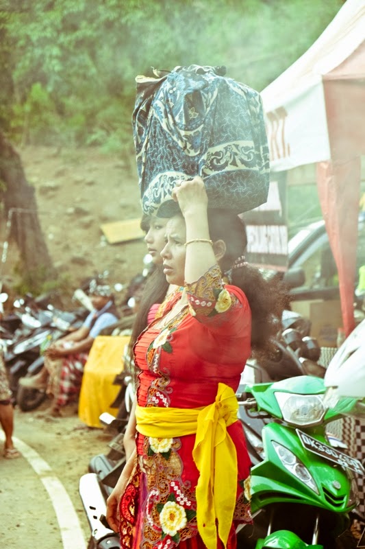Za chwilę dołączam do tłumu. Wolno wspinam się na szczyt góry. Im wyżej, tym więcej ludzi, tym więcej pyłu unosi się w powietrzu. Na szczycie nie ma czym oddychać, nie można poruszać się. Oprócz dymu w powietrzu unosi się monotonna muzyka gamelanu. Ludzie leżą, siedzą, tańczą w transie, walczą i modlą się przy stołach ofiarnych. W wysoko wzniesionych dłoniach mają kwiatki, po każdej modlitwie zatykają je we włosy. Co chwila podchodzi do nich ktoś ze świętą wodą i ryżem. W kapliczkach zasypanych ofiarami buszują małpy. I tak będzie do wschodu słońca. A potem jeszcze dwa dni. A potem przy następnej pełni księżyca…