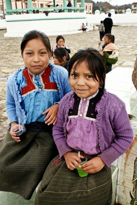 | Przerwa przy pracy. Chamulowie są mistrzami w sprzedaży pamiątek. Stanowią plagę na skalę całego Meksyku. Legalni sprzedawcy pamiątek mówią nawet o mafii Chamulów. A sprzedaży uczą się od małego. |