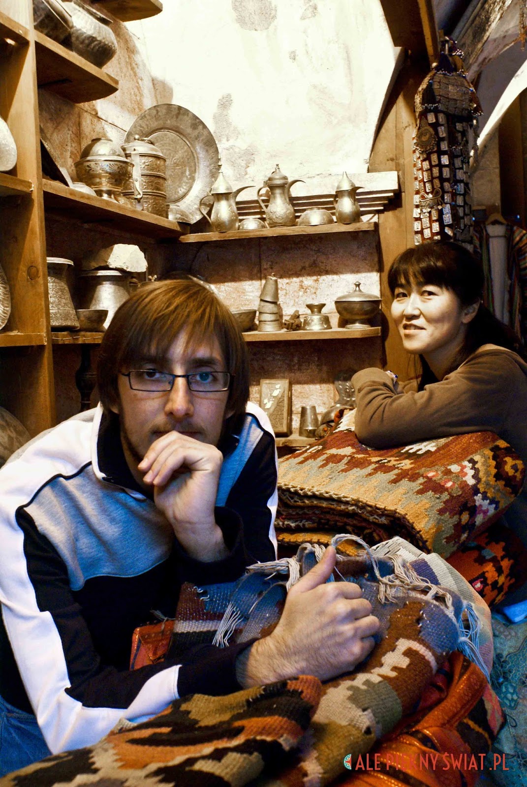 – Jeśli będziecie jechały do Aleppo, to dajcie mi znać – powiedział, kiedy się rozjeżdżaliśmy w swoje strony świata. Doskonały pomysł! I tak kilka dni później przyjechałyśmy do Aleppo, a Jameel zabrał nas na spacer po mieście. Tu jesteśmy w ulubionym sklepie Jameela z antykami – al Qatarjy.