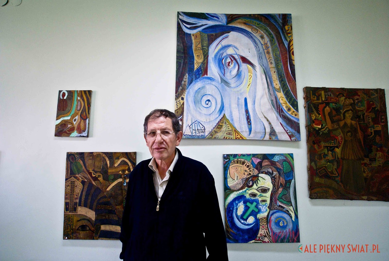 Pan Khaled wykładał mikrobiologię, ale jego druga pasja jest malarstwo. Te obrazy zdobiły jego gabinet.