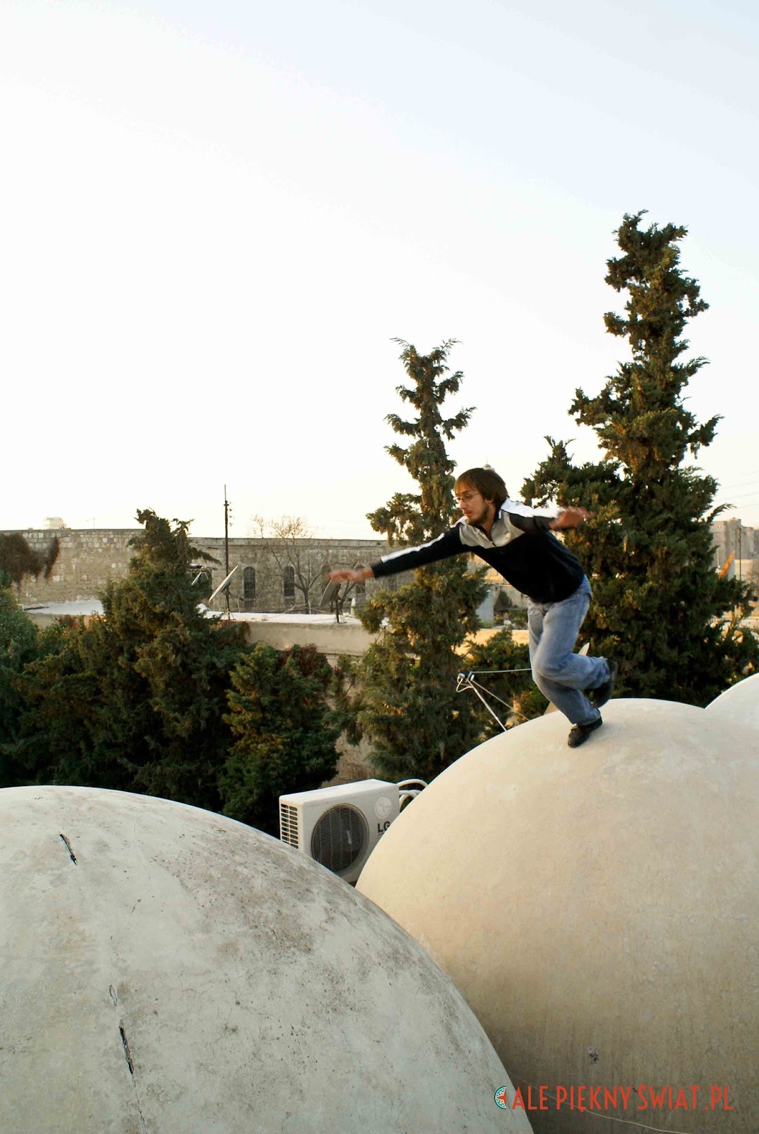 Jameel dobrze znał się z właścicielami sklepu. Kiedy chciał, mógł od nich wsiąść klucze i zabrać znajomych albo turystów na dach, żeby sobie poskakać po kopułach…